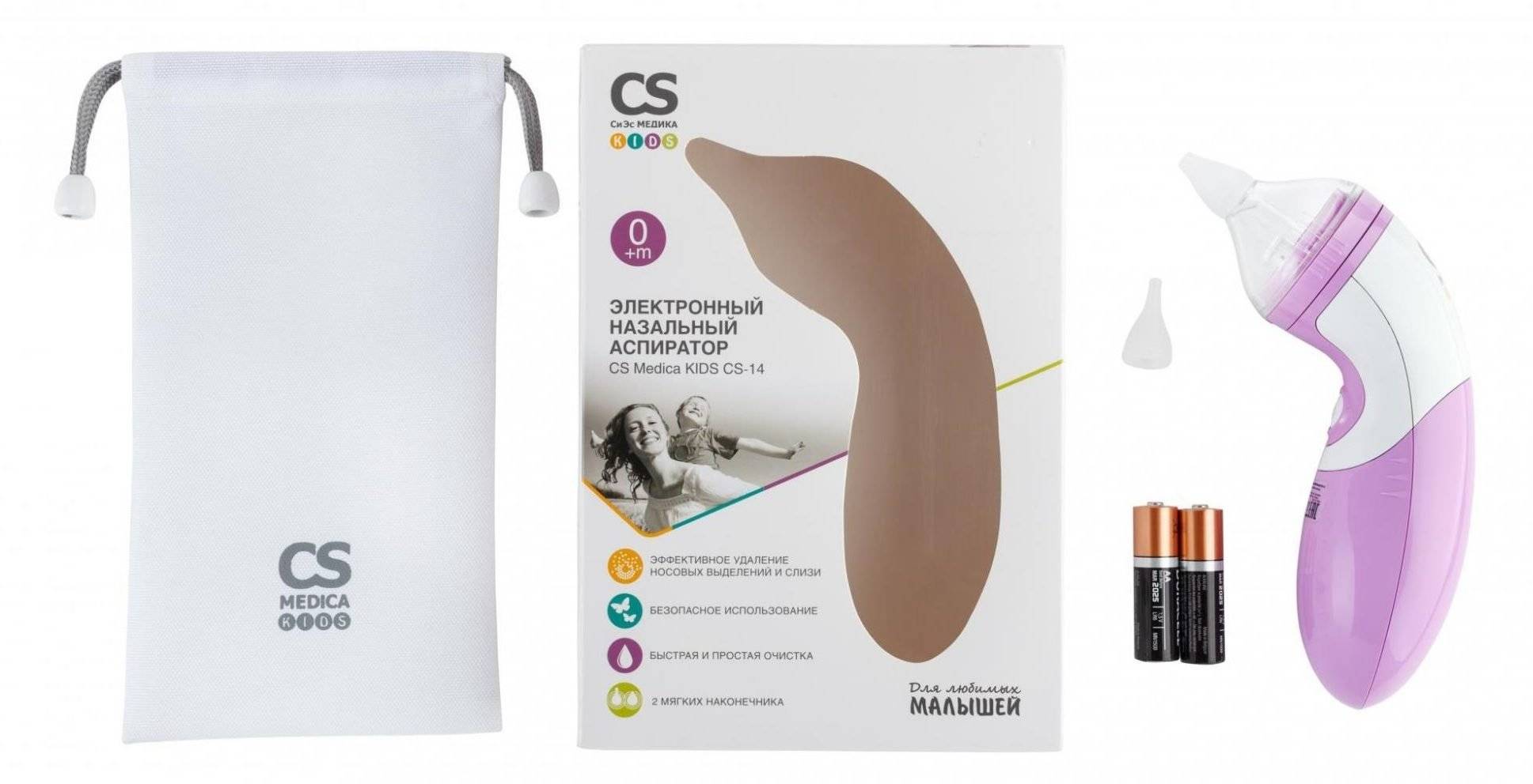 | Cleanoz (США) | Электронный аспиратор на батарейках, очень комфортный в использовании, удобно брать на прогулки и в поездки, не нужно самостоятельно высасывать сопли, мягкие одноразовые насадки, безопасное и комфортное применение, нужно чистить и дезинфицировать после каждого применения, долгий срок службы | 2700-2800 рублей |