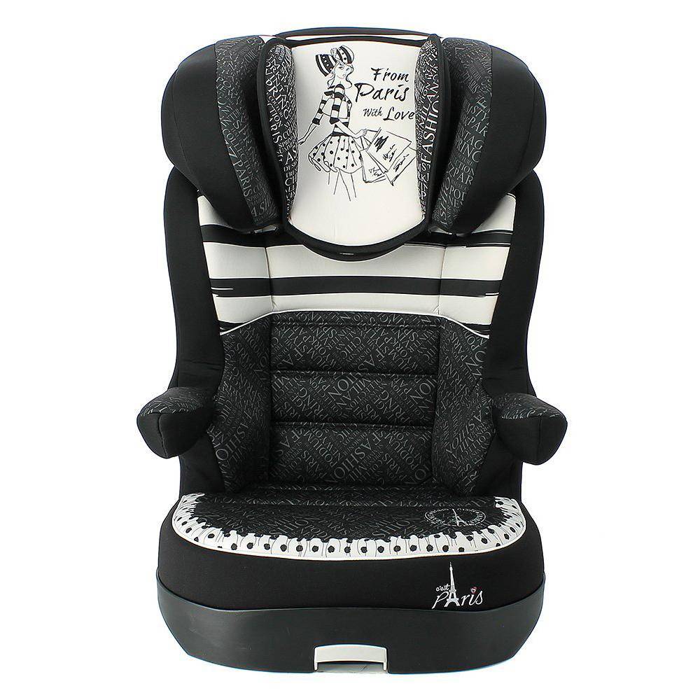 Французское автокресло, отличающееся необычным дизайном: 5 вариантов ярких расцветок, стильные рисунки, узоры либо имитация джинсовой ткани. Для крепления используются штатные автомобильные ремни.