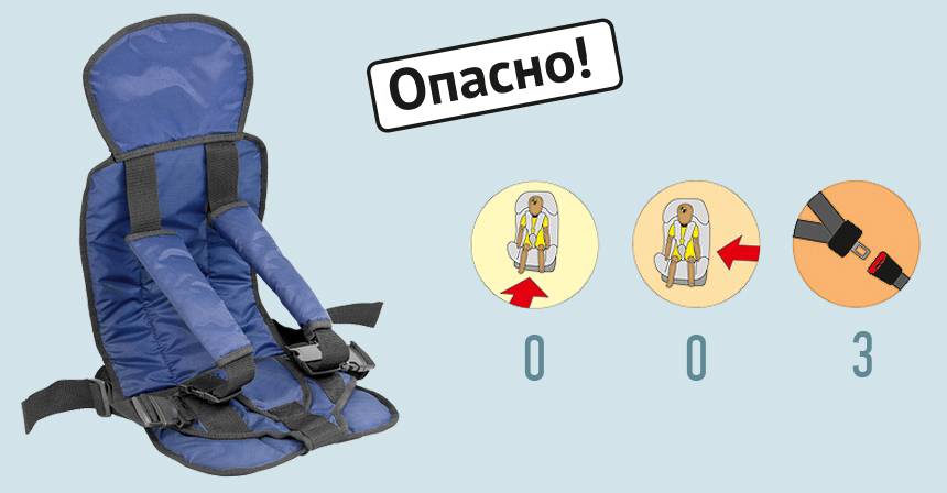Как видно из фото, в краш-тесте на безопасность оно «провалило» испытание как на фронтальный, так и на боковой удар. При этом установка его сложна и не исключает риск ошибки ( 3 балла за исключение риска неправильной установки).