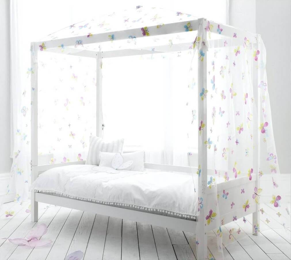 Визуально увеличить пространство детской комнаты поможет легкий воздушный балдахин.
