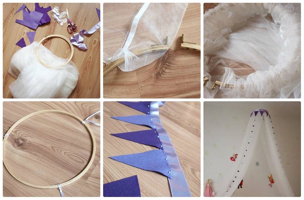 Для того чтобы создать произведение искусства в комнате ребенка, не обязательно заказывать держатели в мастерской или шить на заказ тканевый полог, сделать балдахин своими руками не так сложно.