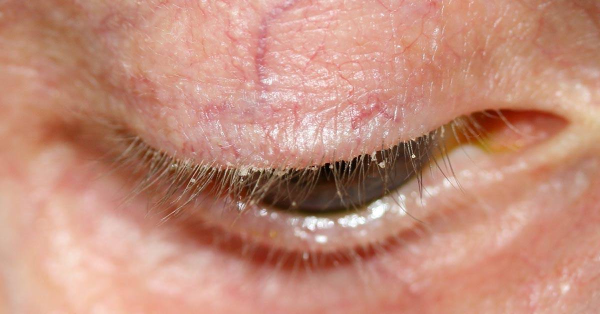 Если блефарит имеет чешуйчатую форму, то соответственно на глазах появятся чешуйки, под которыми будет воспаленная кожа глаз.