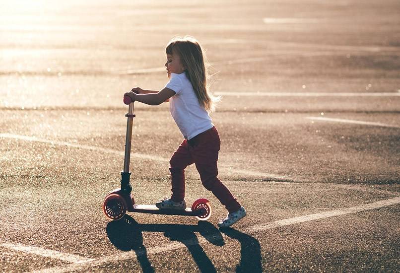 Если девочка устала, ее может повозить кто-то из взрослых.