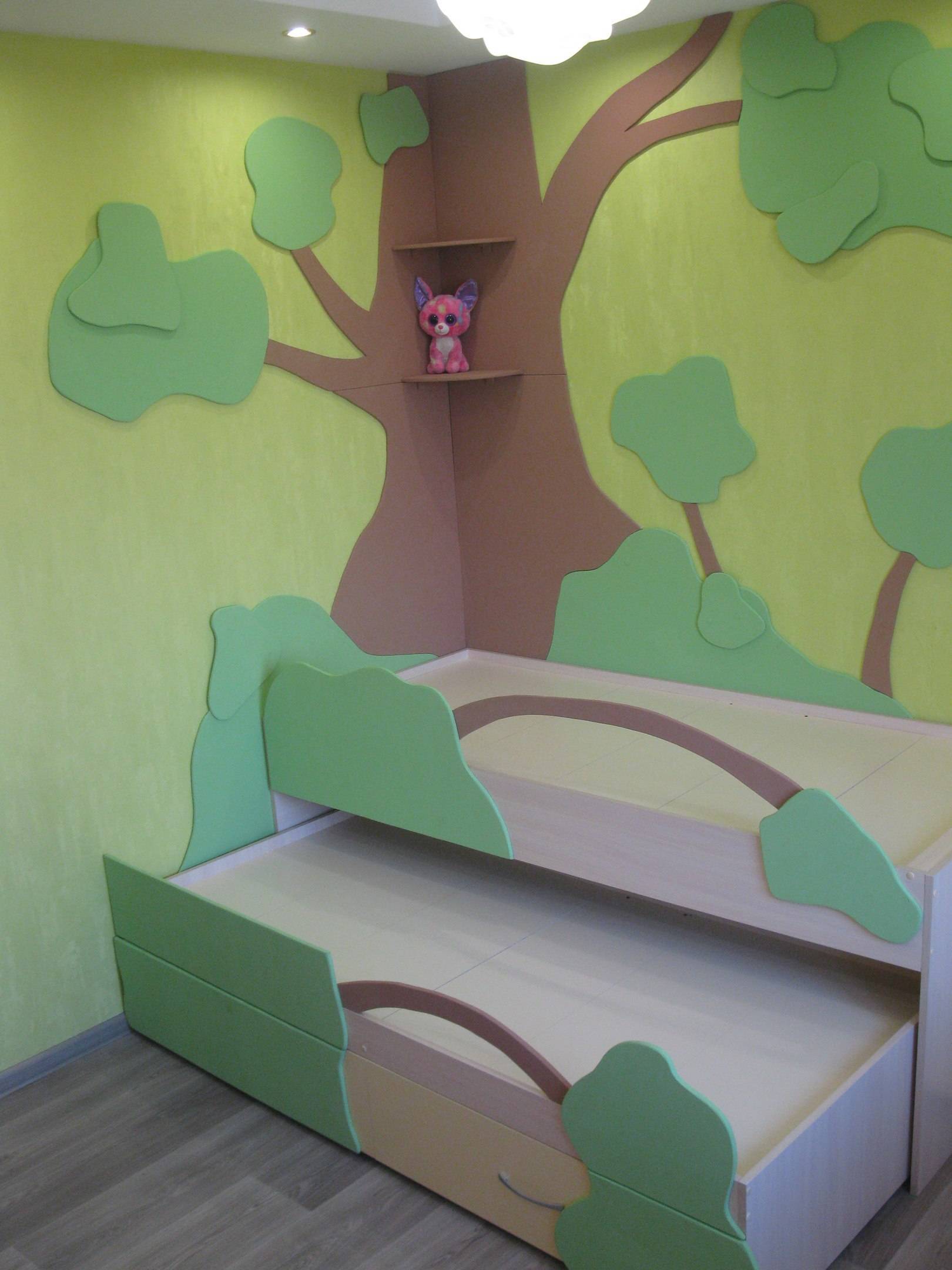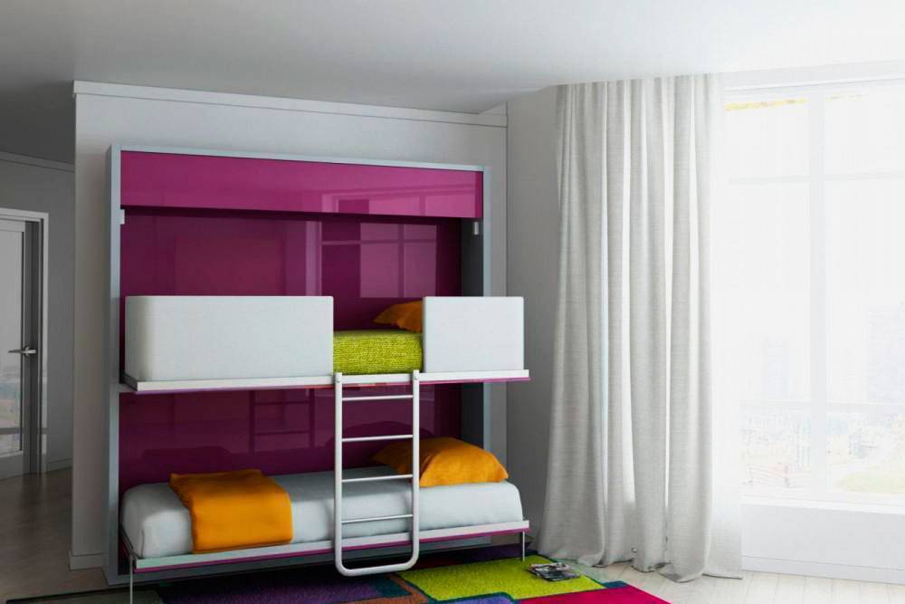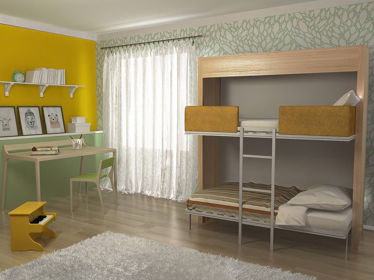 При наличии очень маленького пространства в комнате стоит остановить свое внимание на двухъярусных выдвижных кроватях. Нижний ярус легко убирается в специально предназначенную для этого нишу