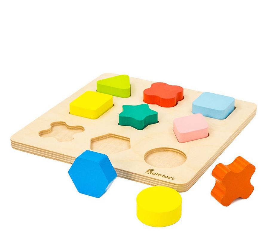Обычно это мягкая основа с несколькими прорезями для звездочек, кружков и квадратов. Для малыша от года — оптимальный вариант. Он не поранится, начнет изучать цвета и формы, сопоставлять размеры