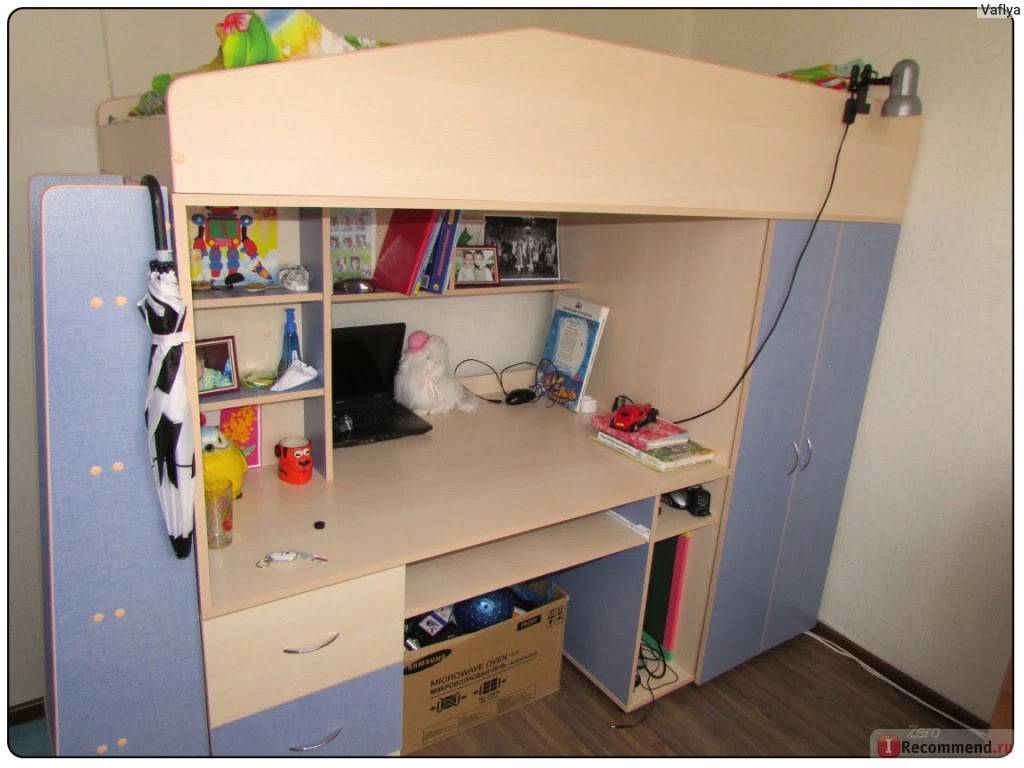 Главным плюсом модели кровать-чердак является возможность экономии пространства под постелью, которое можно использовать как для игр, так и для оформления места для занятий.