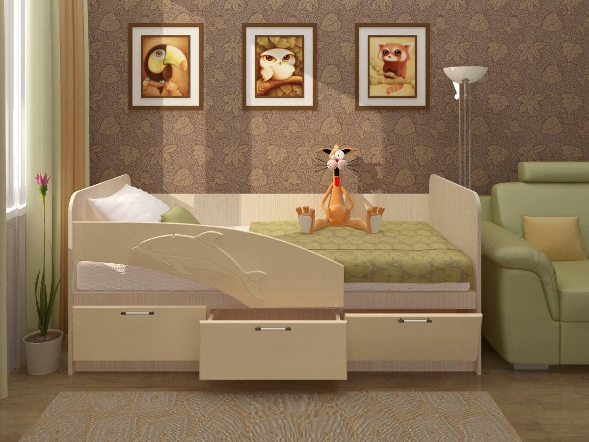 На пороге нового тысячелетия менялось восприятие реальности людей творческих профессий, изменения коснулись и такой сферы как дизайн мебельной продукции. На пути к обеспечению практичности, удобства, экономии пространства и сохранения функциональности опытные мастера сконструировали уникальную детскую кровать «Дельфин» с выдвижными ящиками.