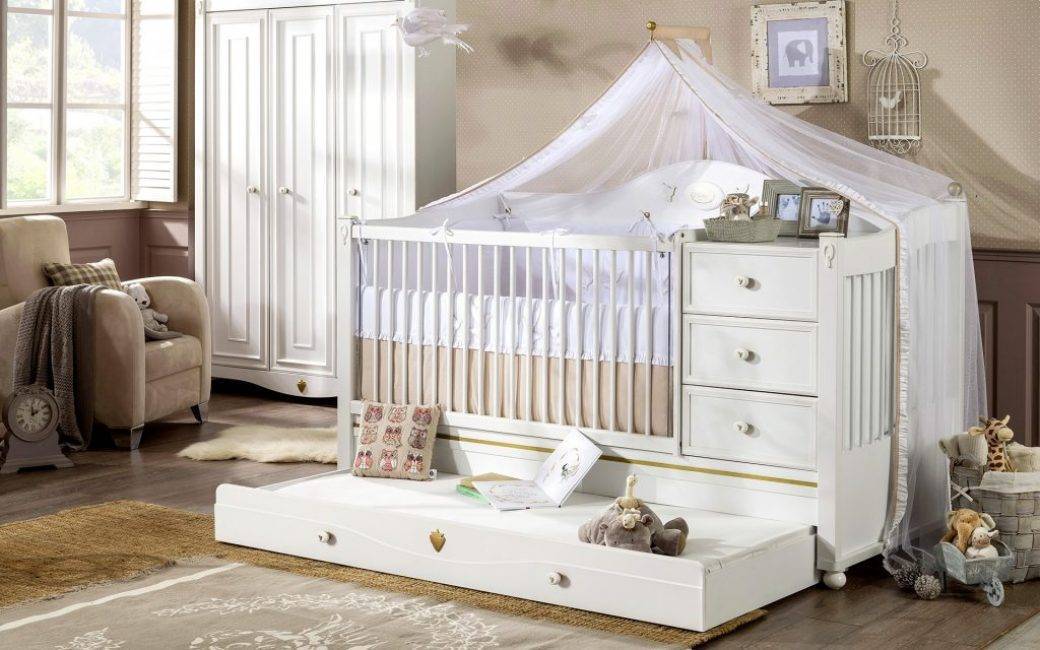 – это целый мебельный гарнитур, включающий в себя непосредственно детскую кроватку, комод и бельевые ящики. По мере взросления ребенка комод можно использовать как самостоятельный предмет мебели: тумбочку, столик, шкафчик.