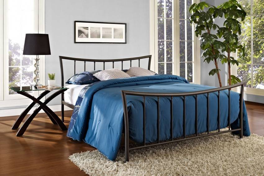 Металлическая кровать состоит из таких частей, как стальной каркас, днище и одна или две спинки в зависимости от типа. Рейки днища могут быть сделаны как из металла, так и из дерева. Деревянные обладают определенной гибкостью, но, тем не менее, они отлично будут поддерживать матрас.