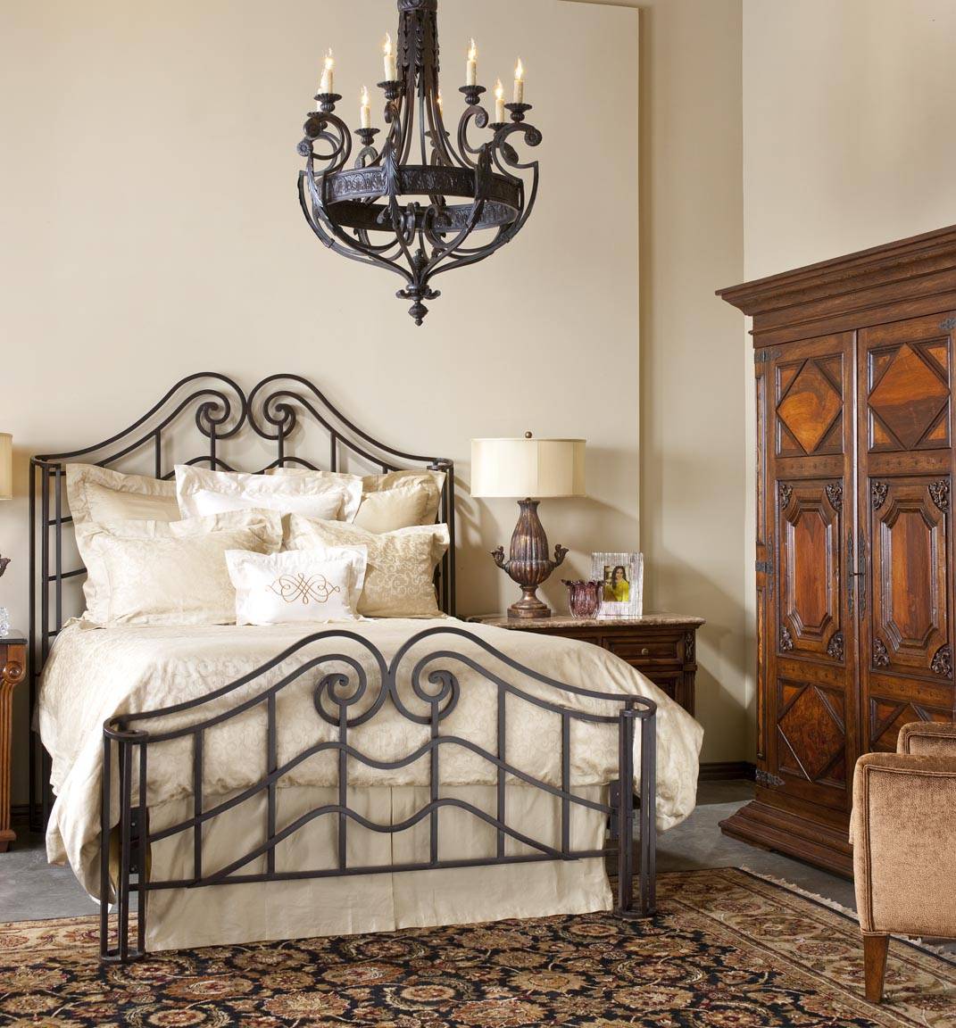 С особым вкусом подбирается текстиль, форма одеял, подушек. Кованая кровать будет гармонировать со стилистикой помещения, если выбирать растительные орнаменты, гобелен.
