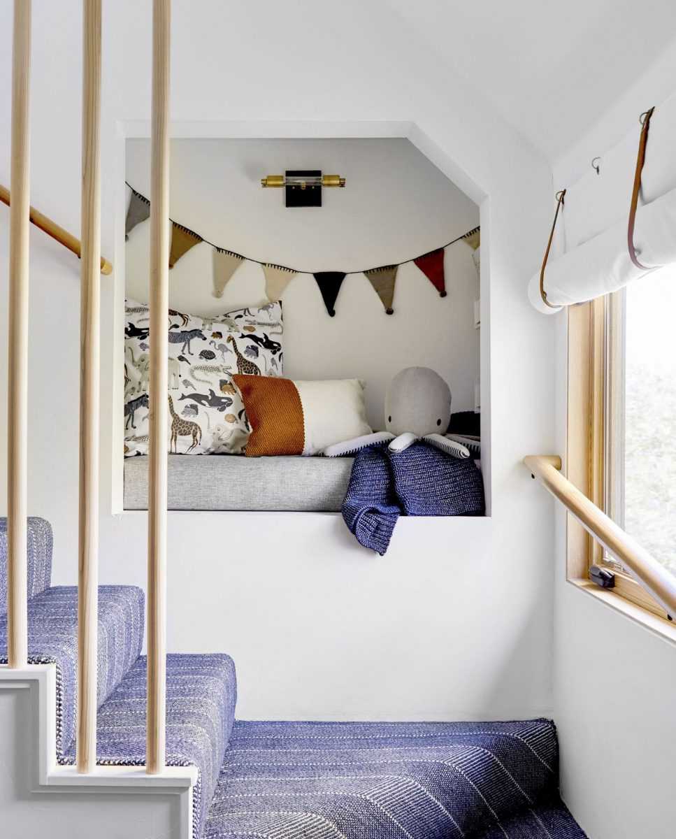 Первый вопрос, который возникает в период, когда двухъярусная кровать еще в планах: кто займет верхнее место? Его надо решать в общей стратегии, поддерживающей детскую иерархию, при которой важно придерживаться возрастной разницы.