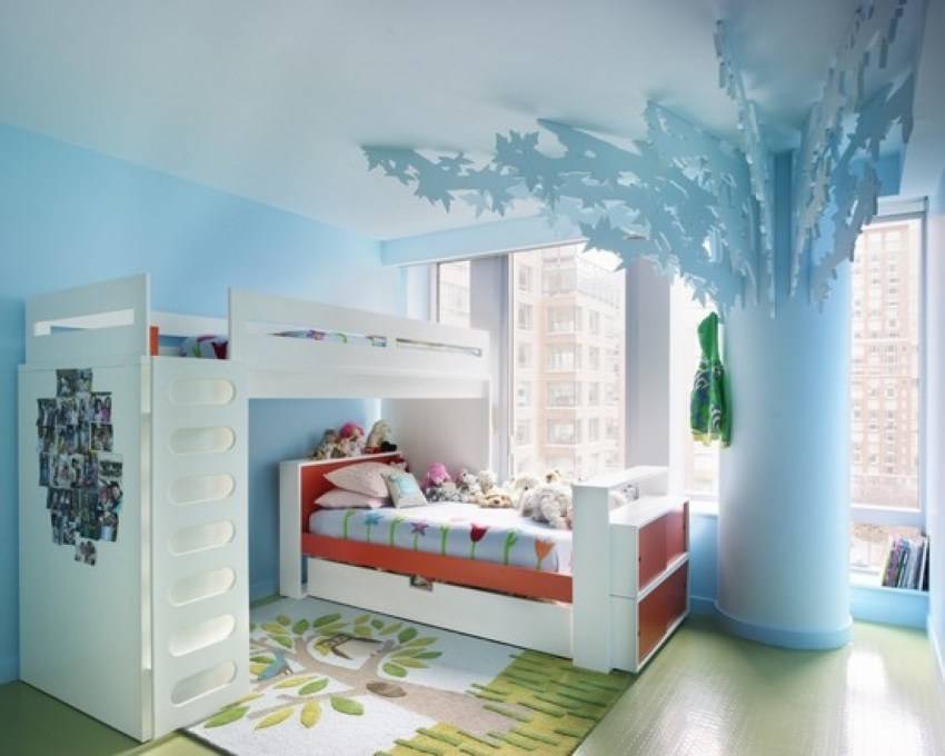 Создать необычный дизайн маленькой детской комнаты помогут следующие приемы: