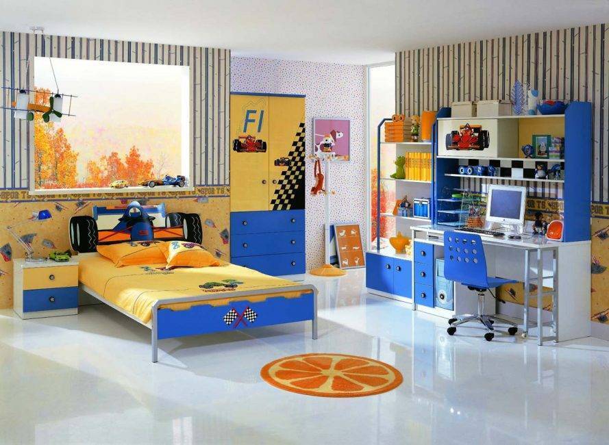 Для мальчика от трех до семи лет цветовую гамму в детской можно сделать более интенсивной