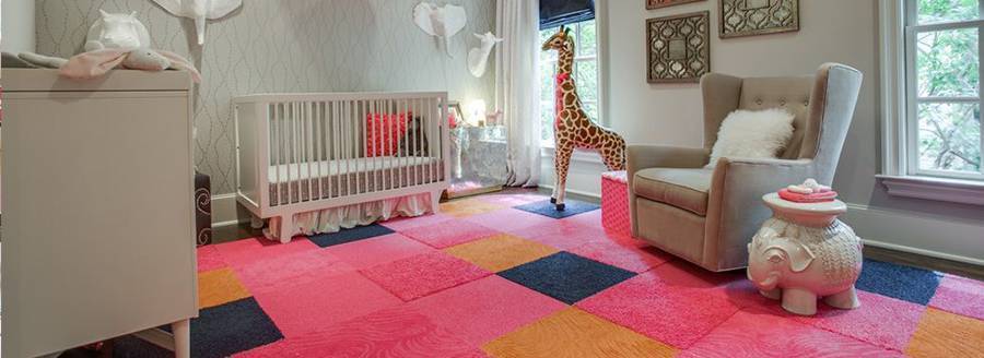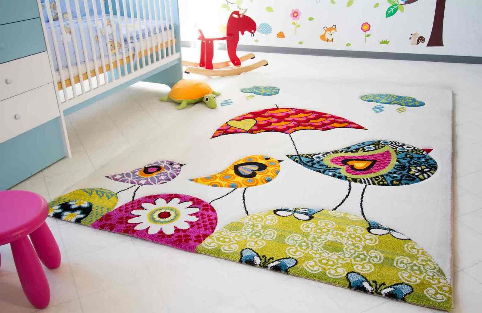 В комнату малышей предпочтительней выбирать приглушенные тона (розовые, голубые, мятные, персиковые, зеленые, синие) с интересными рисунками или узорами. Например, ковер с животными поможет ребенку познавать окружающий мир, малышу будет интересно рассматривать изделие, играя на нем.