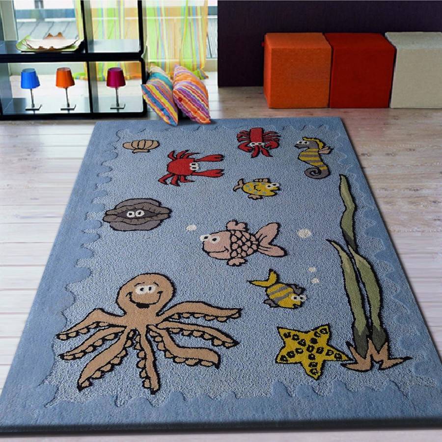 Актуальны и ковры в морском стиле – традиционная для мальчиков бело-голубая цветовая гамма, украшенная изображениями как морской флоры и фауны, так и кораблями, штурвалами или просто морскими пейзажами.