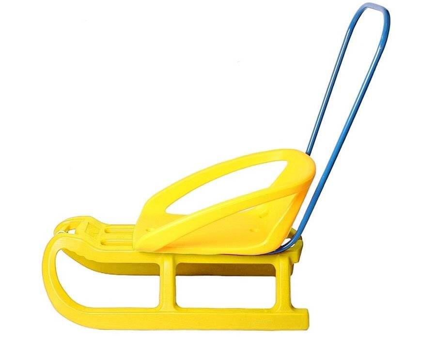 Удобная, легковесная и необычайно эргономичная детская модель с продуманной конструкцией: толкателем, широкими полозками и удобным, высоко расположенным сиденьем. При этом, сани отличаются хорошей маневренностью и стильным внешним видом. Проходимость тоже на высоте — саням не страшны даже бордюры. Для обеспечения лучшего скольжения полозья оборудованы лезвиями из стали. Это позволяет без проблем преодолевать бесснежные участки, не повредив при этом пластик. Толкатель и спинка выполнены съемными.