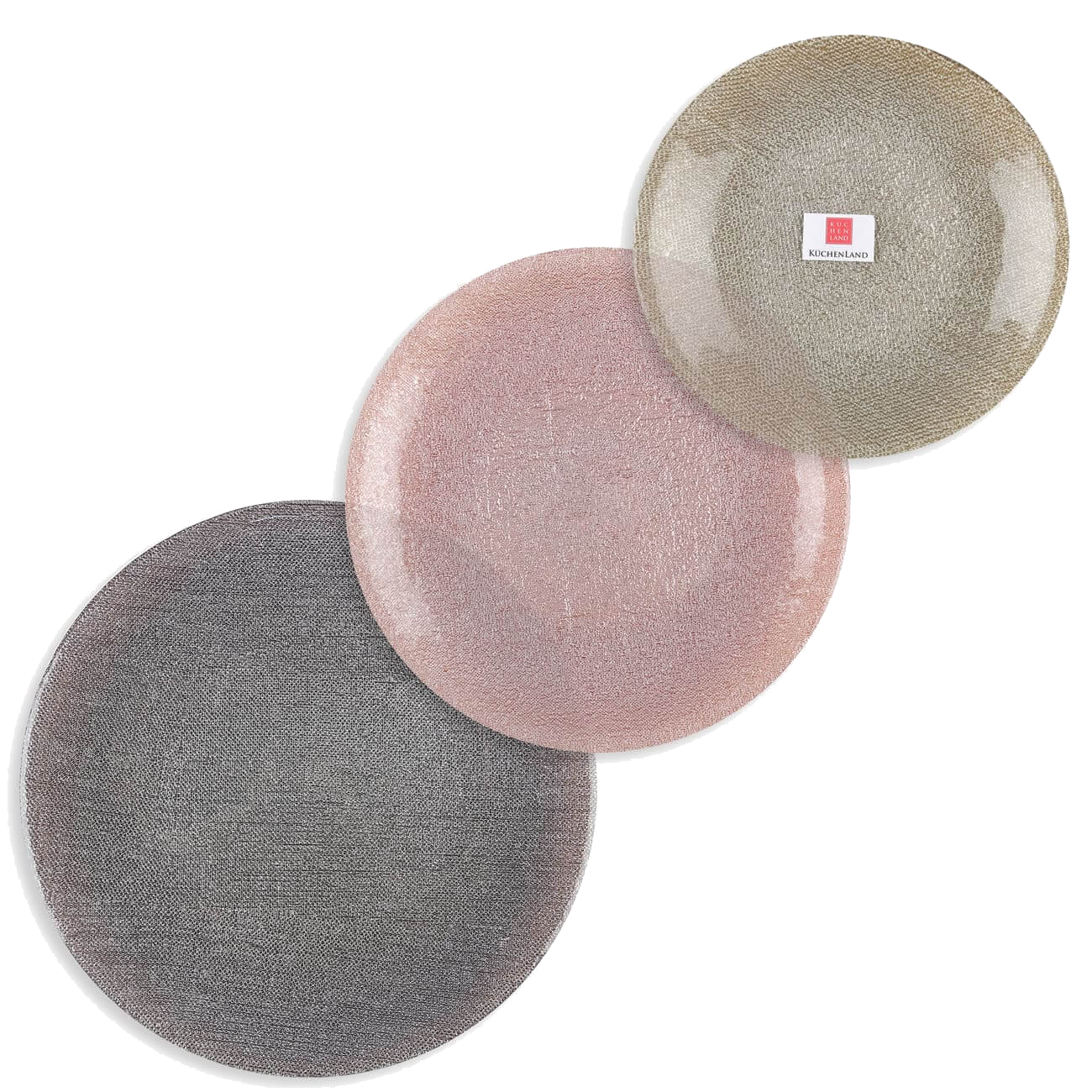 - Стекло. Стеклянные тарелки – одни из наиболее популярных сегодня. Их можно увидеть на каждой кухне. Могут быть самых различных форм, размеров. Большим их преимуществом является возможность использования в СВЧ-печи.