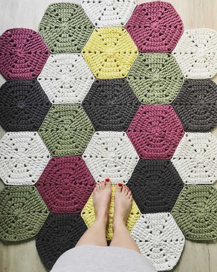Подобное вязание используется и сегодня. Только увеличилось количество схем и геометрия подобных напольных украшений.