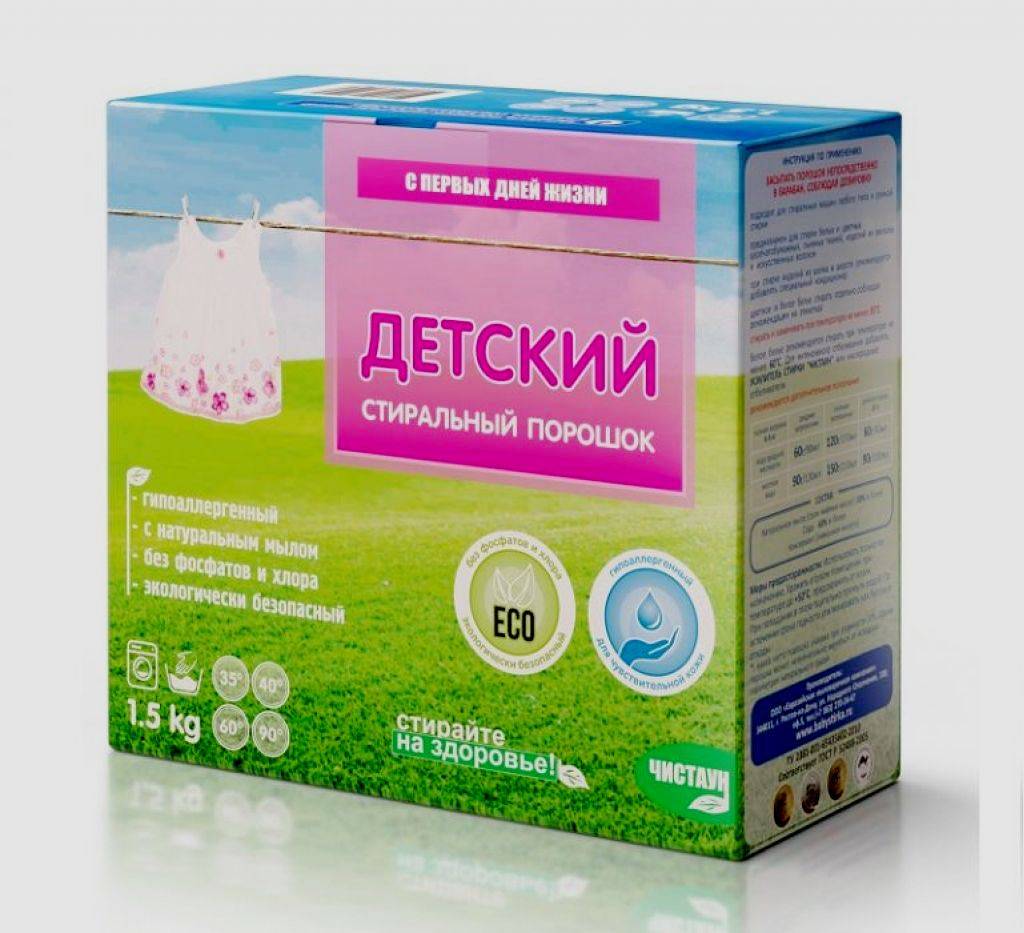 Стиральные порошки на основе хозяйственного мыла признаны безопасными для здоровья ребенка, они не допускают аллергических проявлений, не наносят вред незащищенной коже младенца, при этом отлично справляются с любыми сложными загрязнениями: продуктами жизнедеятельности малыша, пятнами от детского питания. Порошок с таким составом рекомендован к использованию педиатрами и дерматологами.