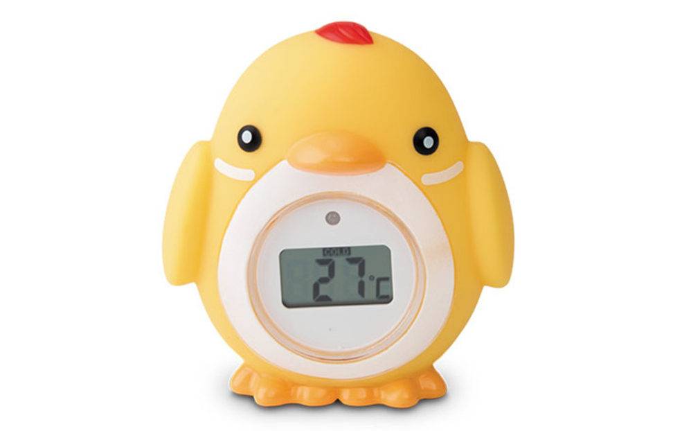 Термометр в виде игрушки позволяет контролировать температуру воды в ванной или бассейне. Устройство позволяет избежать перегрева или переохлаждения ребенка. Используется как игрушка для купания. Внутри прибора расположены специальные датчики – в случае перегрева воды, они будут мигать красным цветом. В комплекте с устройством идет дополнительная батарейка. Термометр способен измерять температуру до 50 градусов. На него действует гарантия от производителя.