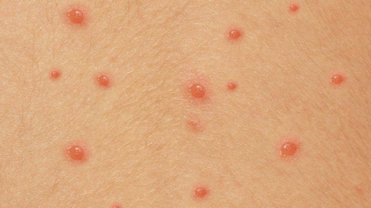 В зонах поражения сосудов образовывается мелкая сыпь, постепенно преобразовывающая в папулы наполненные жидкостью. Высыпания начинают появляться на коже головы и лица стремительно распространяясь по всему телу и даже на слизистых оболочках носа и рта.