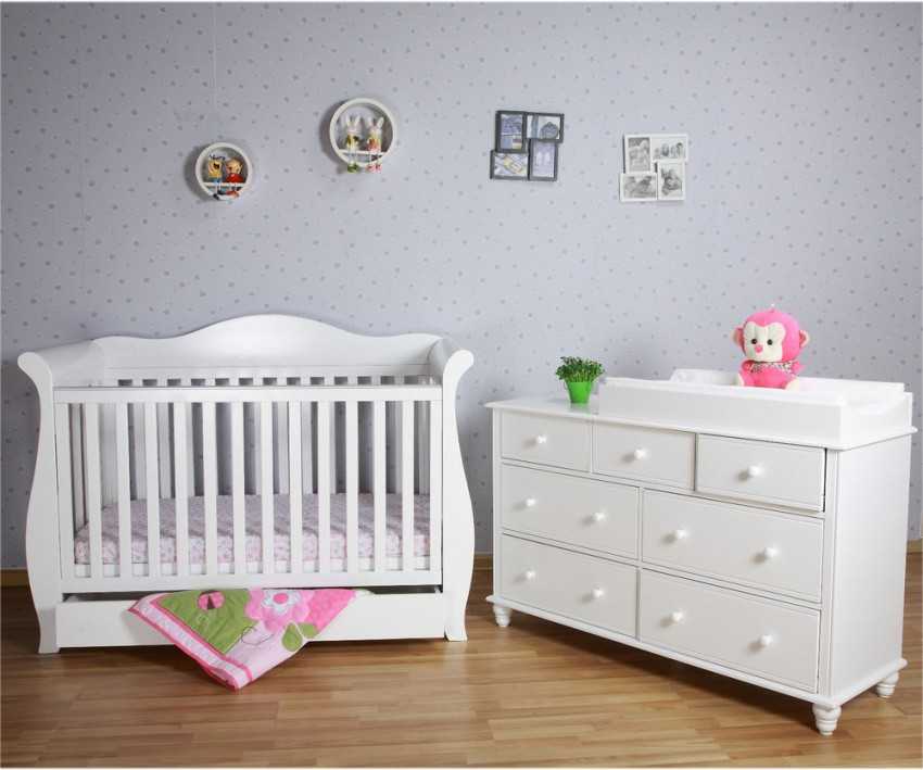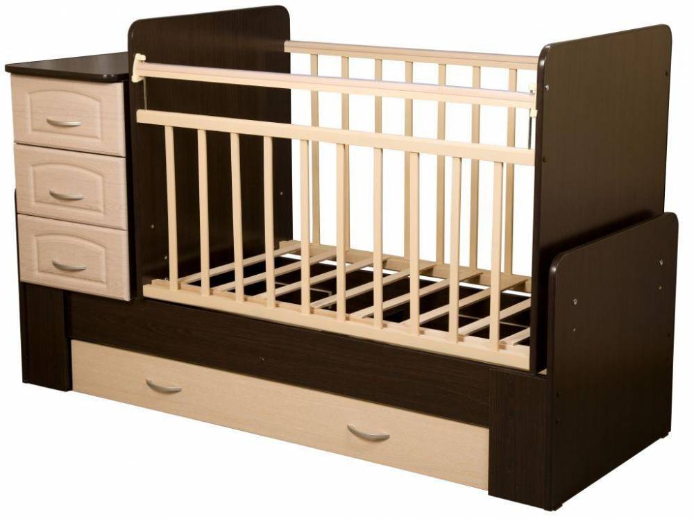 - Детская кроватка с комодом и пеленальным столиком. Это комбинированные кровати, рассчитаны на детей от 0 до 10 лет.