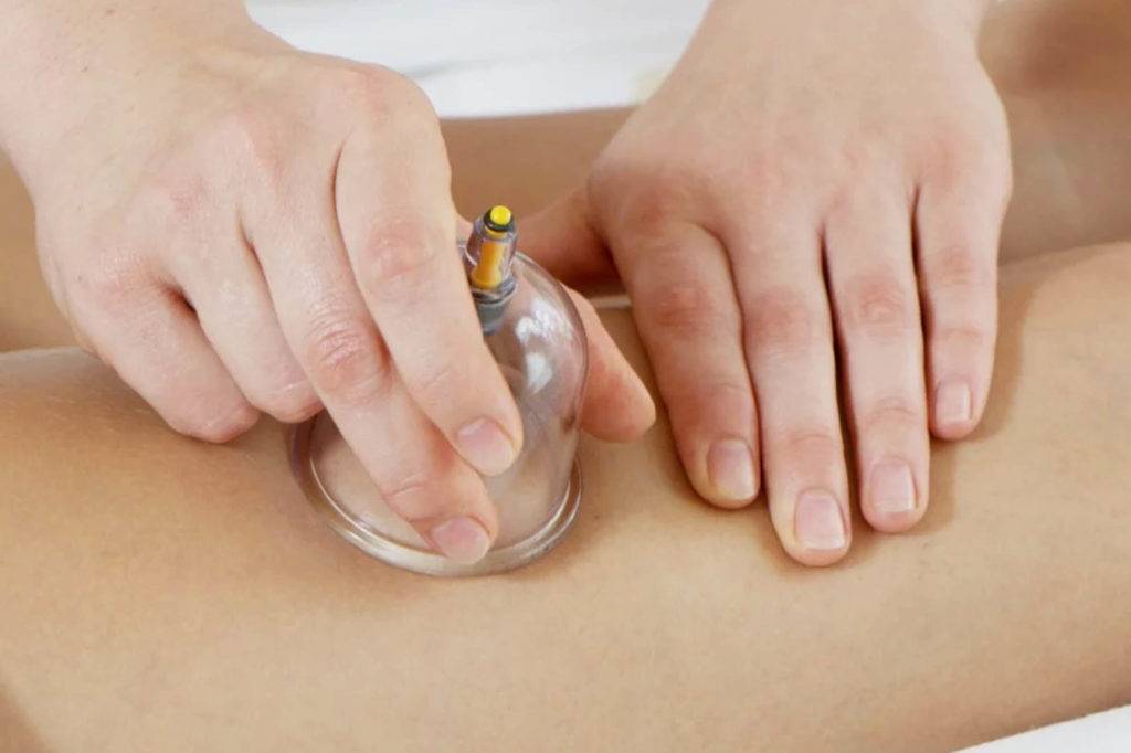 Для данной процедуры необходимо купить специальные стеклянные или силиконовые банки. Достаточно будет 2 штук. Суть методики заключается в активном перемещении банок по коже спины, предварительно смазанной массажным маслом или жирным кремом. Массировать кожу банками надо по схемам, двигая банки вдоль позвоночника вверх-вниз, спиралью, зигзагом, полукругом и так далее. При выполнении движений кожный покров должен разогреться и слегка покраснеть.