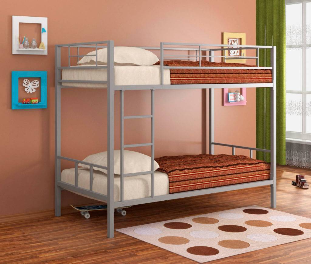 Металлические изделия обеспечивают надежность и долговечность использования. Они практически не ломаются и достаточно прочные. Цена на них обычно выше, чем на другие. Минус металлических кроватей — достаточно небольшой выбор дизайнерских моделей. Такие простые изделия иногда просто не подходят для создания законченного дизайна интерьера детской комнатки.