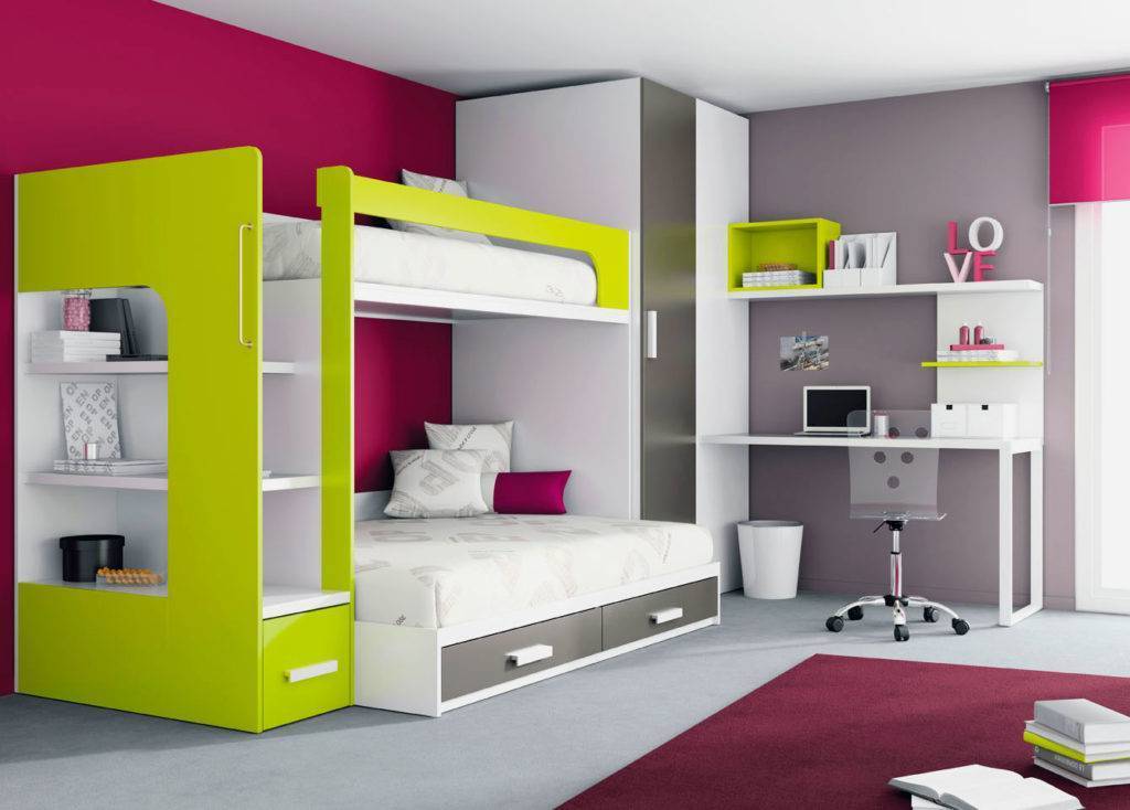 - Эргономичные модели мебели позволяют создать комфортные условия для совместного проживания двух, а иногда и трех детей.