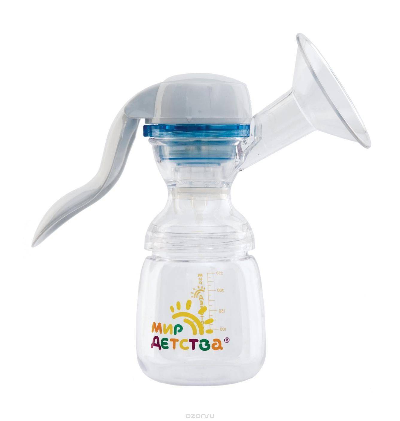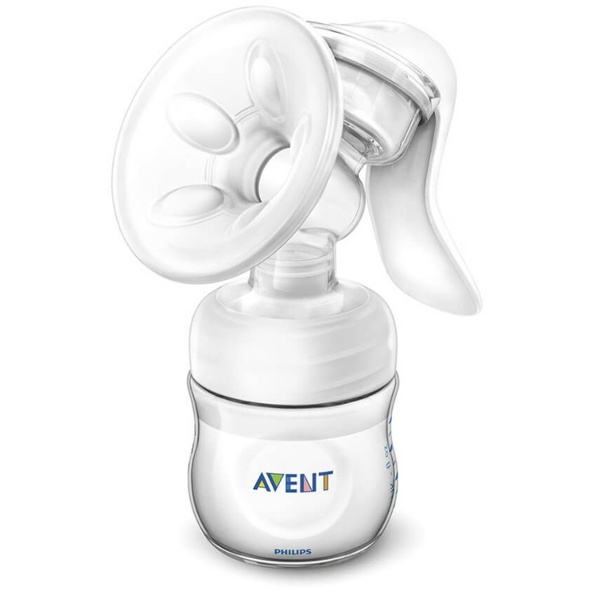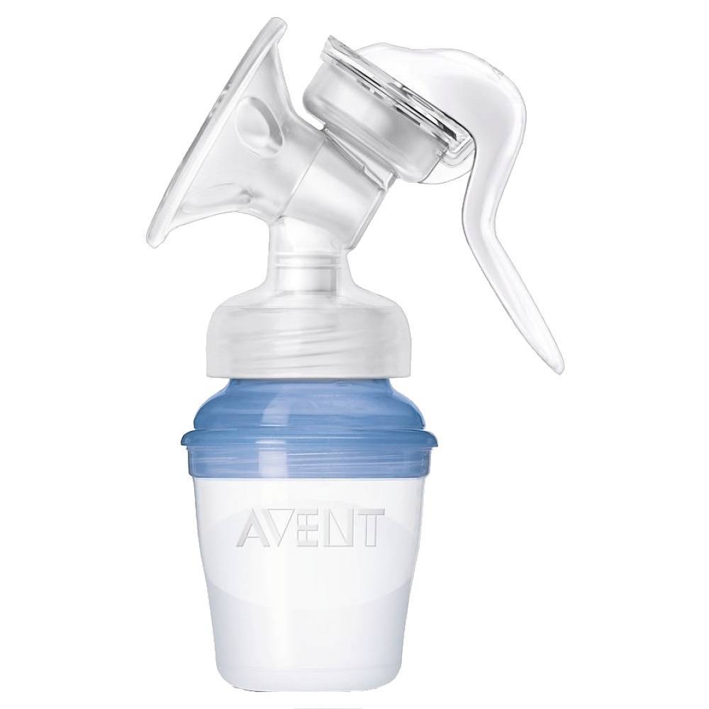 Ручной молокоотсос имеет самую широкую комплектацию. Кроме бутылочки для кормления, крышки и соски, к устройству прилагаются вкладыши для груди. Также для хранения есть большой контейнер, который можно использовать и для стерилизации элементов. В отдельных комплектациях имеется контейнер для хранения молока. Силиконовая насадка имеет два дополнительных кольца для мягкого прилегания и эффективного сцеживания.