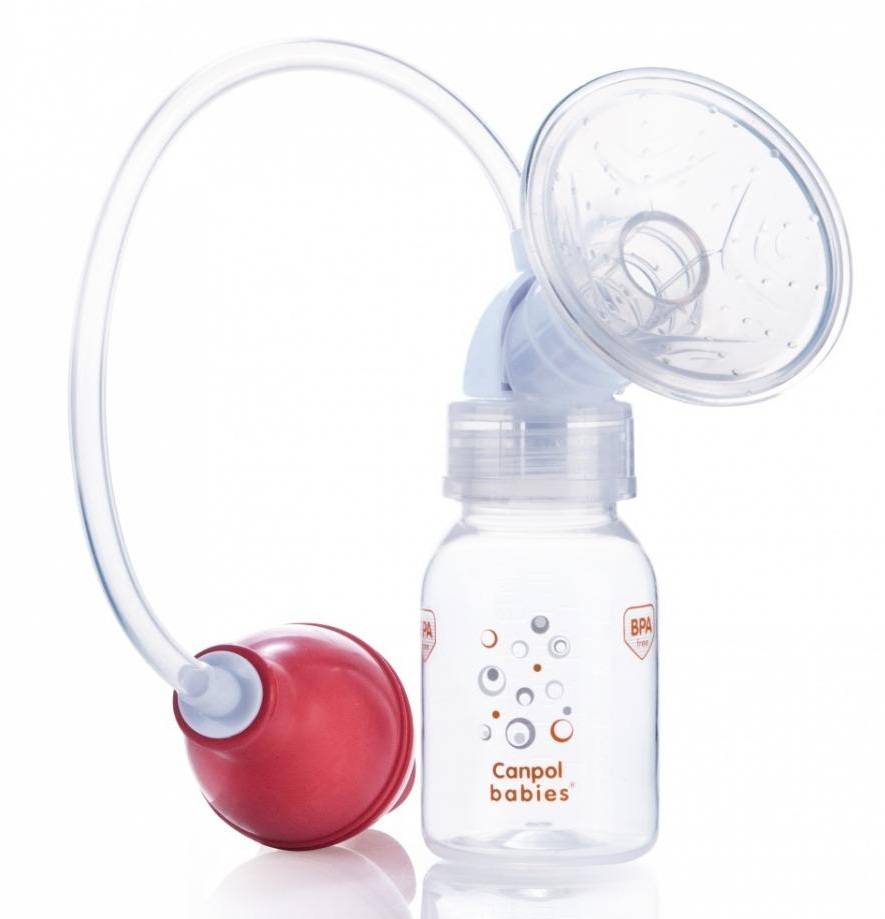 Относительно дешёвый ручной молокосос нашего рейтинга. Данная модель обладает классической конструкцией. Полезна будет для тех, у кого нет больших проблем с лактацией. В комплект молокоотсоса Canpol Babies входит бутылочка 125 мл, соска, подставка, заглушка, специальный мешочек для хранения.