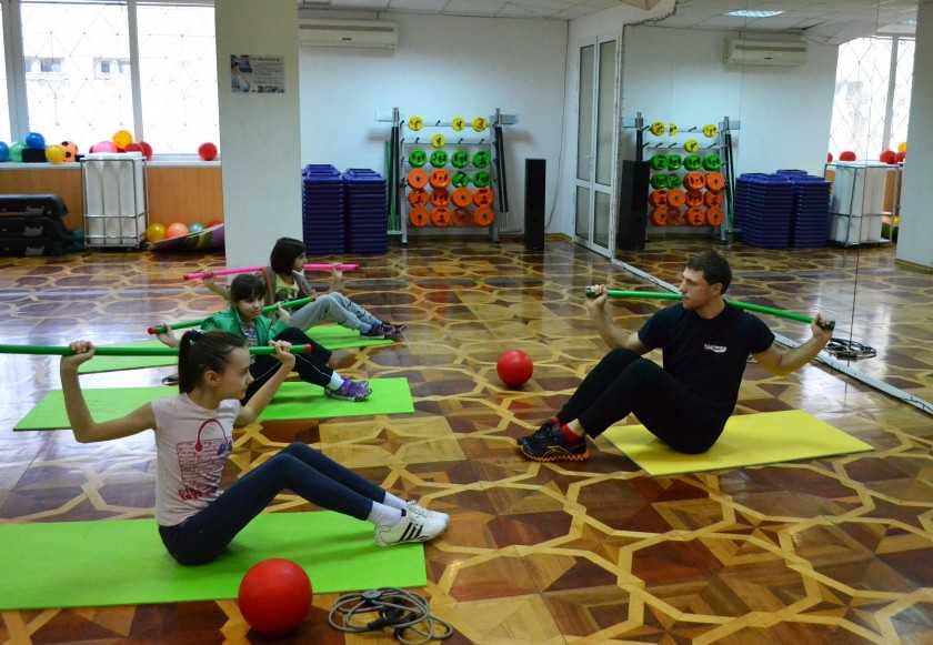 Эффективность детских упражнений возрастает при наличии дополнительного реквизита: скакалки, мяча, фитбола, гимнастической палки, гантелей весом до 0,3 кг.