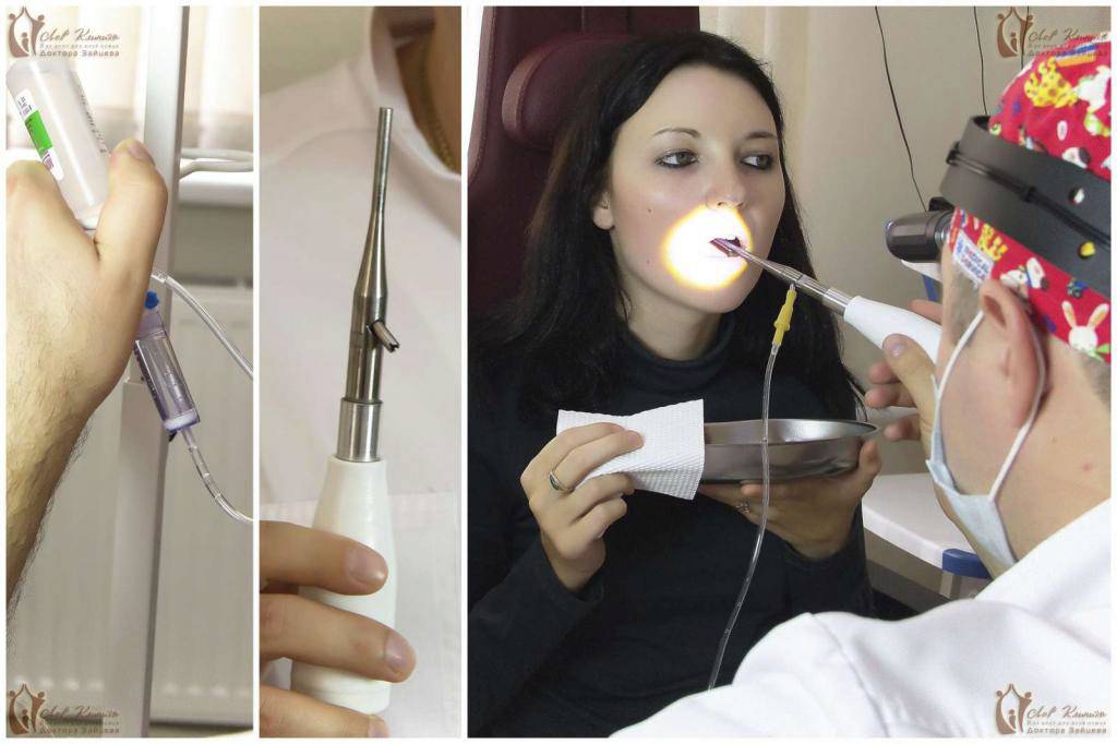 Следующий шаг после промывания гланд — проведение физиотерапевтических процедур. Сначала на очищенные гланды ЛОР-врач воздействует ультразвуком. Под действием ультразвука лекарственный препарат превращается в мелкодисперсную взвесь, которая обволакивает гланды и обеспечивает более глубокое проникновение лекарства в воспалённую область. Эта процедура получила название «Ультразвуковое лекарственное орошение».