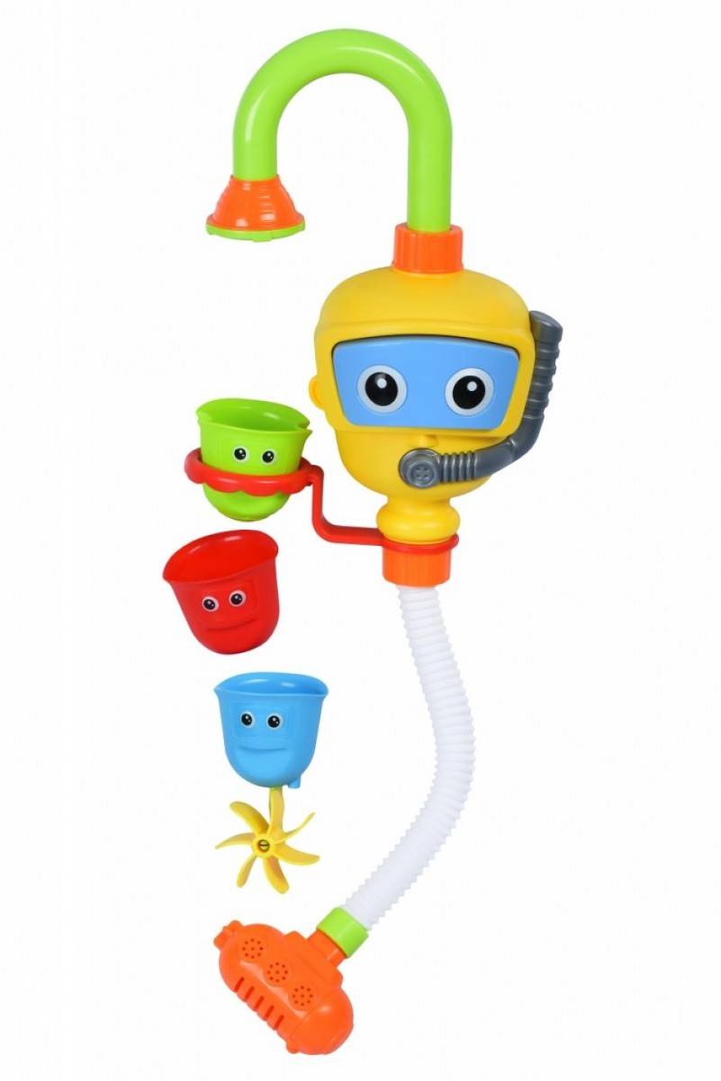 Этот игровой набор превратит обычное купание ребенка в настоящее развлечение. Игрушка представляет собой кран с насосом, набором шестеренок и формочек. Она крепится к краю ванны, набирает из нее воду и выливает тонкой струйкой на шестеренки, приводя их в движение. Это сопровождается различными интересными эффектами. Например, при наполнении формочки с сюрпризом из нее выскакивает поплавок с глазками.