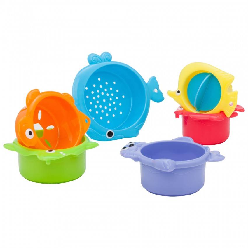 Ёмкости различной окраски и размеров представляют особый интерес для детей первого полугодия жизни. Малыши с удовольствием наблюдают, как водичка перетекает из одного ведёрка в другое.