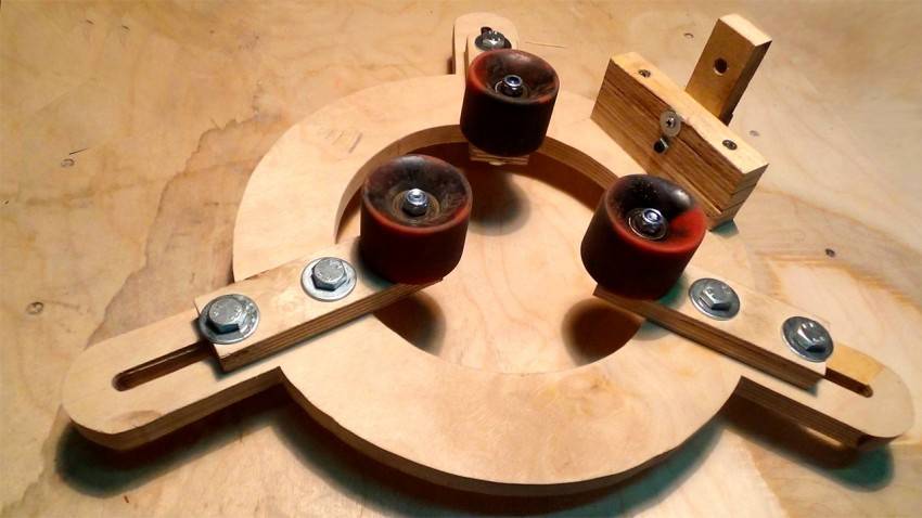- Колеса вырезаем из более толстой доски, после чего просверливаем в них отверстия с таким расчётом, чтобы они надевались на ось с небольшим усилием.