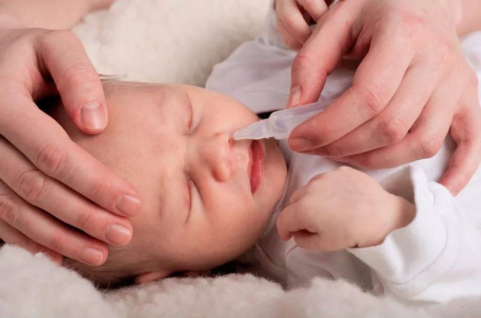 Для этого капают несколько капель физического раствора в каждую ноздрю грудничка.