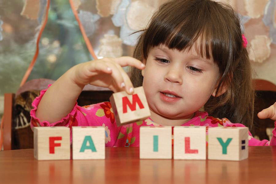 Девочка складывает из кубиков слово