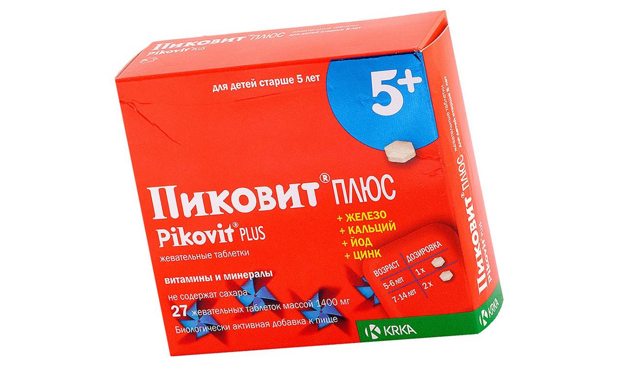 Пиковит плюс – очень эффективный источник витаминов и минералов для детей от 5 лет и старше. Выпускается в виде жевательных таблеток бананового вкуса. Вкусный пиковит рекомендуется в такие периоды повышенной потребности в витаминах и минералах: