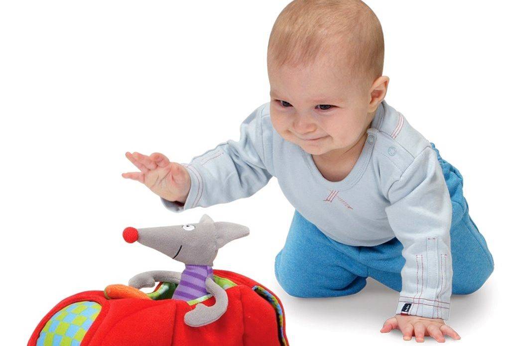 - Расположите яркие игрушки в непосредственной близости от юного исследователя. Пусть они мотивируют его подползти, встать или подтянуться.