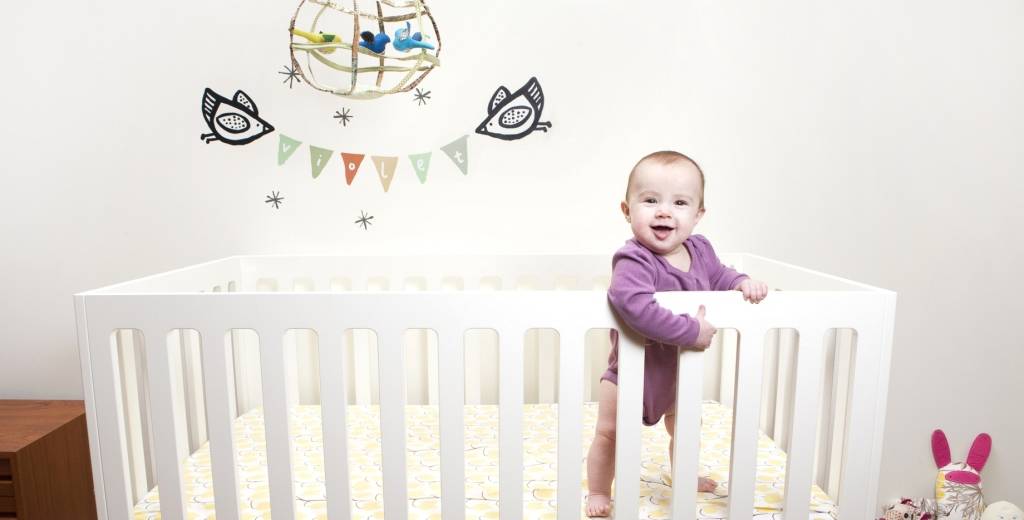 - Для обучения прекрасно подходит кроватка: уберите из нее все, обо что ребенок может споткнуться. Если есть возможность, переместите матрас в более низкое положение.