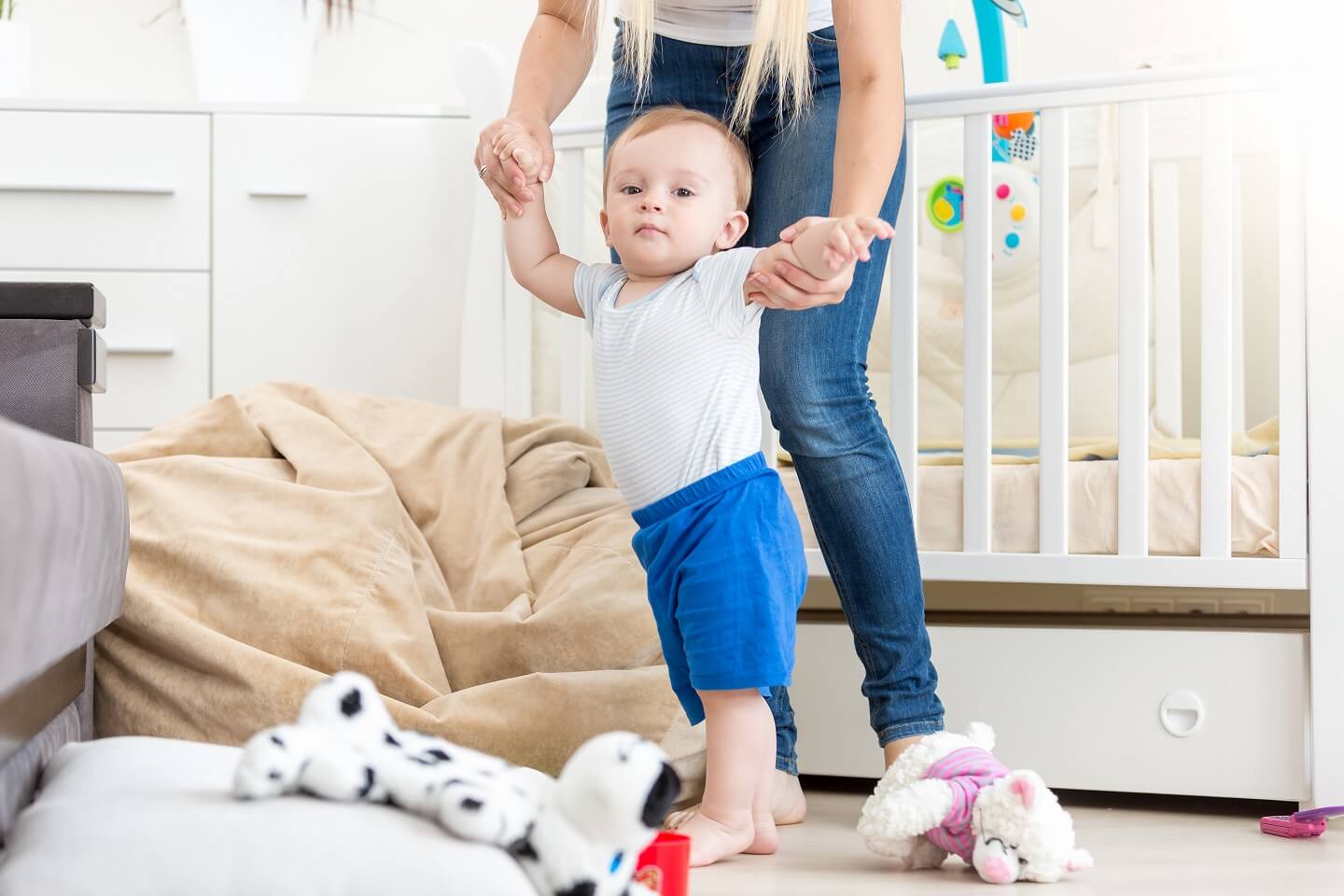 - Гиперопека, чаще всего со стороны мамы. Да, малыш шагает неуверенно и, при отсутствии родительской поддержки, он может упасть. Но ничего страшного в этом нет, без подобного опыта ребенок никогда не сможет научится ходить самостоятельно. Родителям необходимо убрать все опасные вещи в доме, а также наклеить специальную защиту на острые углы мебели.