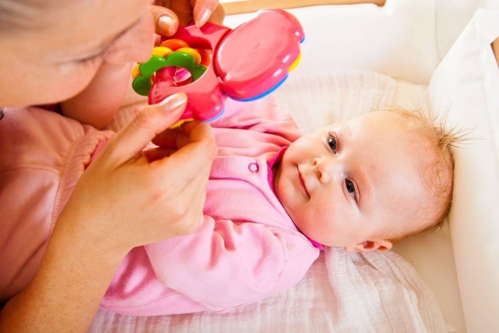 Обратите внимание! Для развития грудничка очень полезна особая игра. В этом возрасте малыш понимает, что его улыбка вызывает ответную со стороны взрослого, это нужно использовать