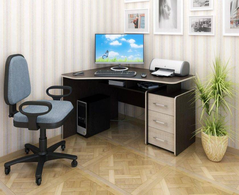 - угловая – треугольная форма столешницы для установки в углу, на ней можно расположить один локоть при работе;