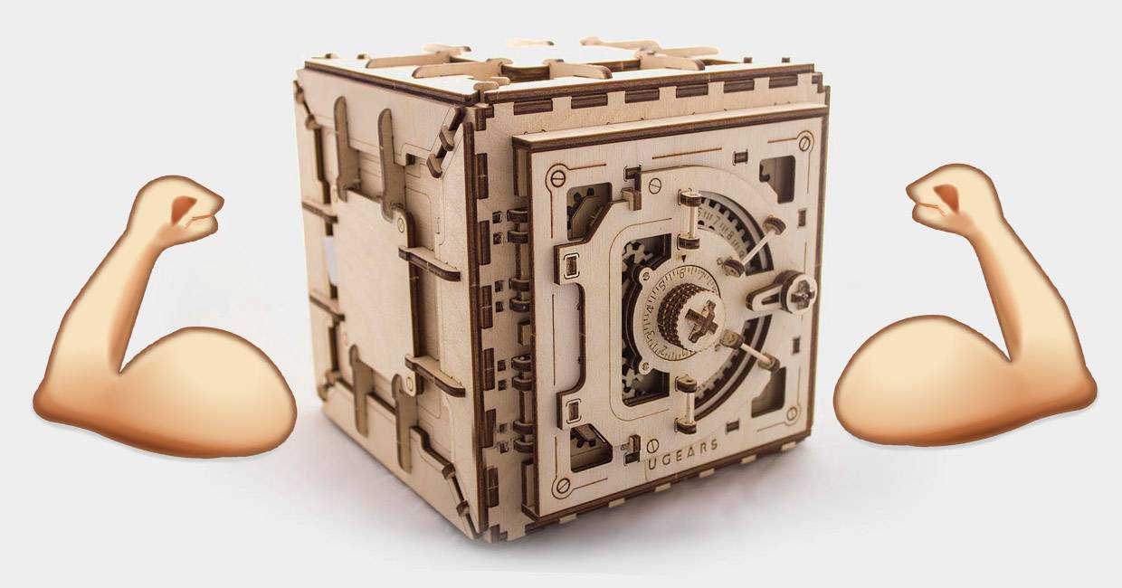P.S.: сейчас в магазин поступила самая крутая модель UGears, которую просто невозможно не хотеть. Это настоящий сейф с полноценным механизмом и уникальным кодом открытия: