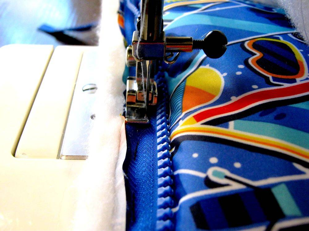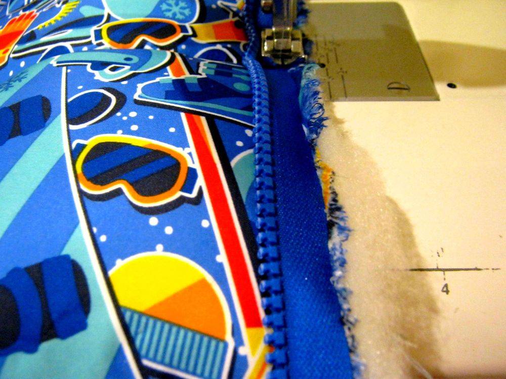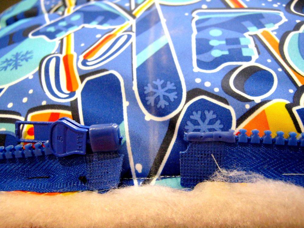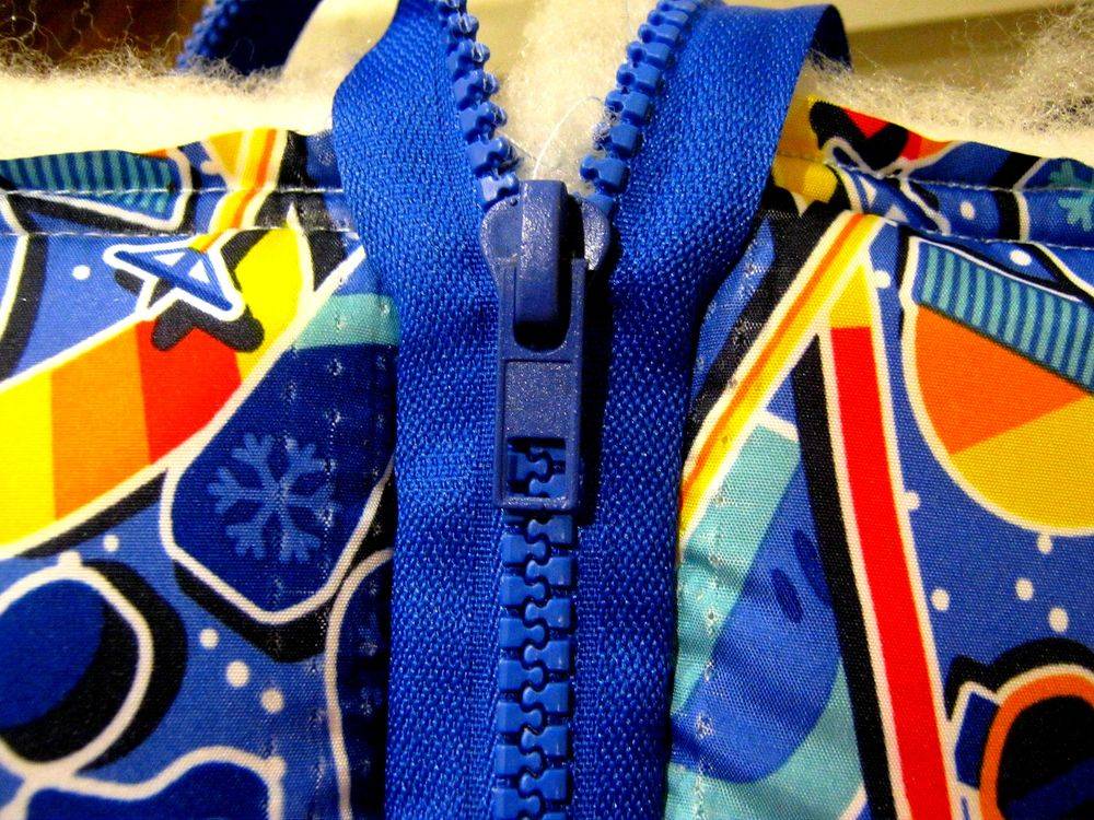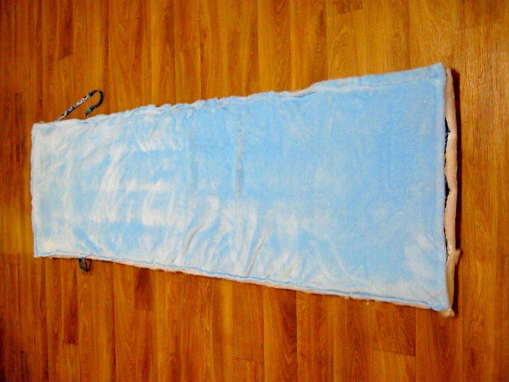 Выбираются ткани для трех слоев (внутренний, утеплитель и внешний). Понадобится прямоугольник из ткани 130х60 см. Все слои сшиваются. Прямоугольник нужно сложить вдвое, отступив 20 см от верха и пришить молнии с обеих сторон. Верхняя часть загибается, формируется в капюшон и сшивается по бокам.