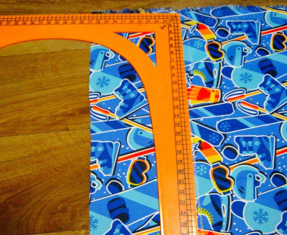 - Вначале нужно выкроить из хлопковой и плюшевой тканей квадраты размером 92*92 см, само изделие получится размером 90*90 см. Для того, чтобы получить одинаковые детали, сначала раскроите хлопок, наложите его на плюш и по размерам первого квадрата расчертите второй.