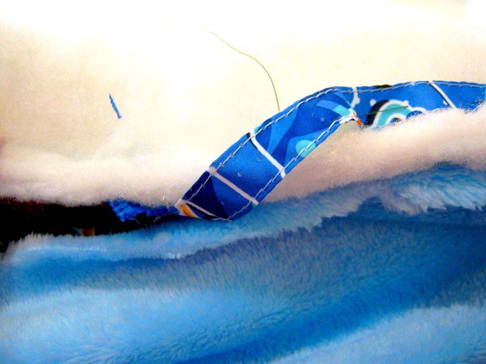 - Скрепите края портновскими булавками довольно часто, так как Минки имеет свойство растягиваться при прошивке изделия.