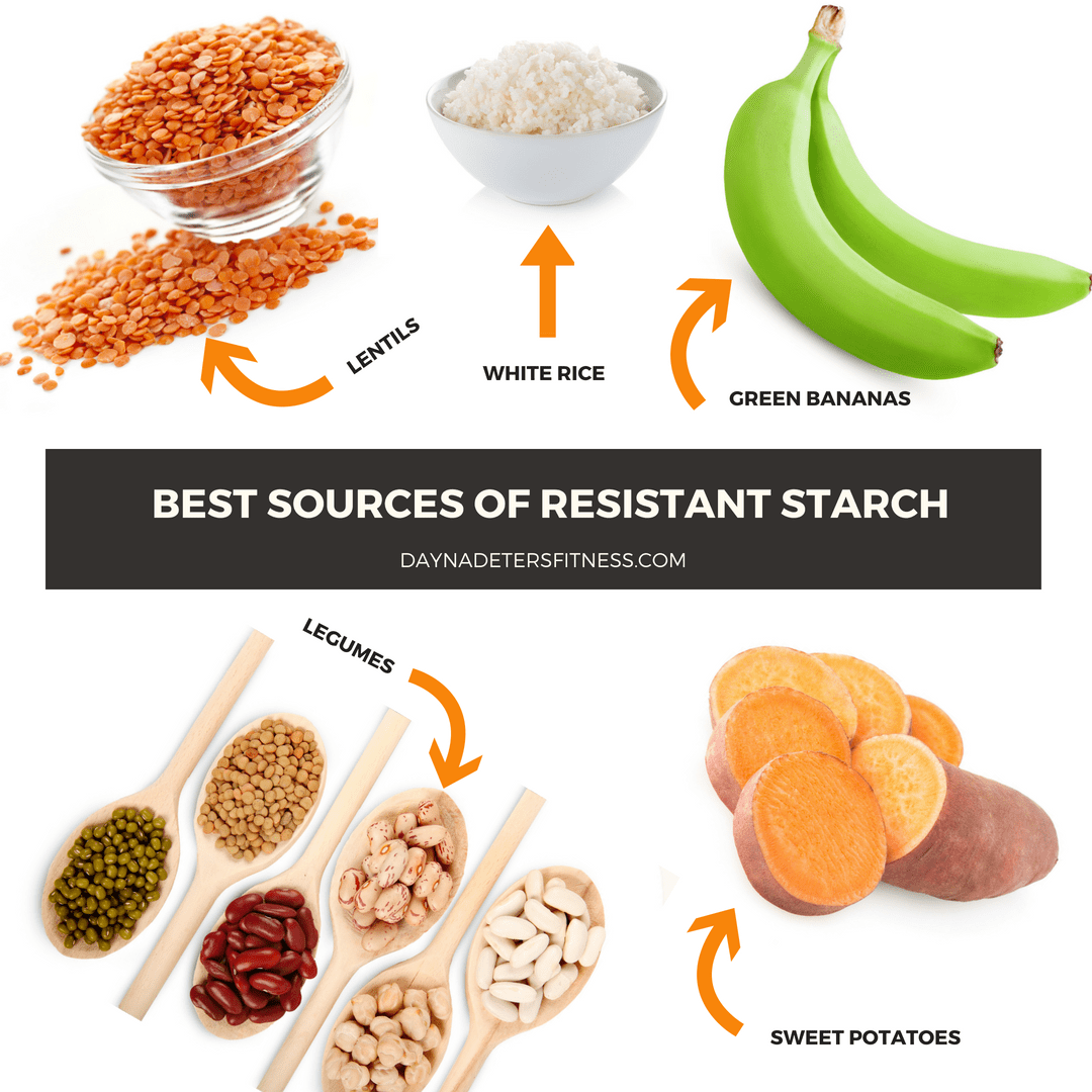 Источниками резистентного крахмала могут послужить бананы, кукуруза, картофель, батат, перловка, овсянка, чечевица, коричневый рис.