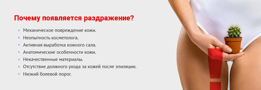 - Отсутствие должного ухода за кожей после эпиляции. Для предотвращения раздражения пользуйтесь специальными увлажняющими средствами (крема, лосьоны, спреи).